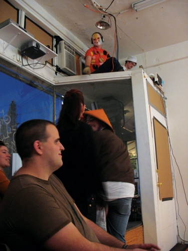 Last month we had a lovely time sitting in near total darkness wearing our new red jogging suit. This month the color is orange. We’ve been told that it will be well lit and autumnal. Please wear something orange and receive a free orange thing.