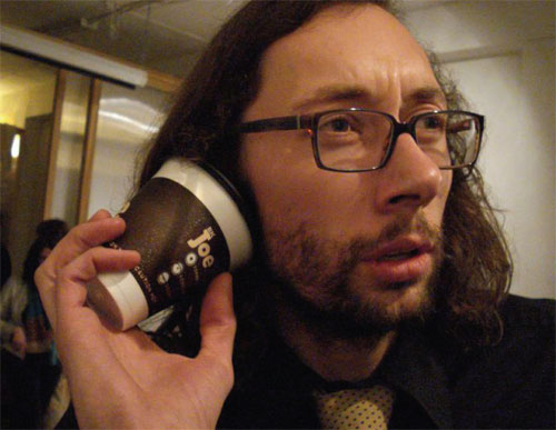 Nearby tiny seagulls sing out of used styrofoam coffee cups, transplanting an oceanic experience to the sidewalk and the gallery.