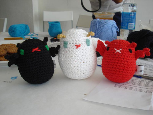 Because we are endlessly distractable by anything absurdly cute, we found it hard to say no when Cheryl Cambras offered to teach a workshop on amigurumi — the Japanese art of knitting or crocheting small stuffed animals and anthropomorphic creatures.