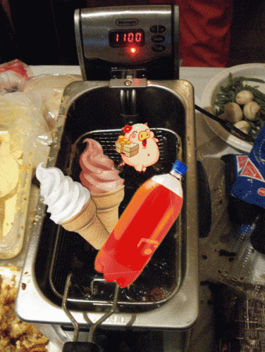 2) Bring something edible to fry. Our trained fryolater technicians will be standing by, eager to batter and fatify your soon to be delicious snacks. Our extensive testing suggests that almost any item will bring great fried satisfaction – potatoes, fish, vegetables, onions, twinkies, etc. Just in case we bought extra fire extinguishers.