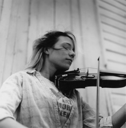 Using her violin and a loop pedal, Kim Free builds layers of melody to create a song to the sirens.