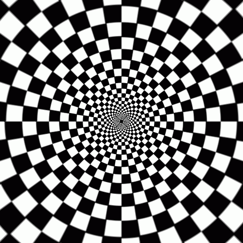 Organized by artist Emily Joyce, the show takes place in Machine Project’s optically challenging Machine Project Project Space for Projects, which has its walls, floor and ceiling papered with black and white checkerboard pattern.