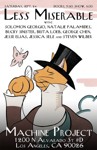 Less Miserable returns to Machine Project on Saturday, September 24th at 8pm, for another evening of stand-up in the Mystery Theater.